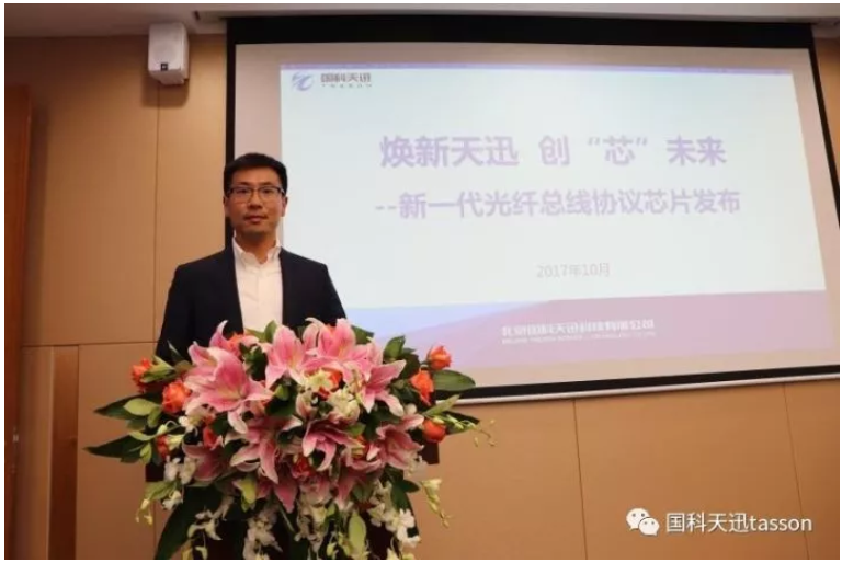 国科宁波冯旭私人定制旅行有限公司市场部经理徐俊亭为大家讲解并发布国内高可靠光纤通信领域的首款总线协议芯片产品。